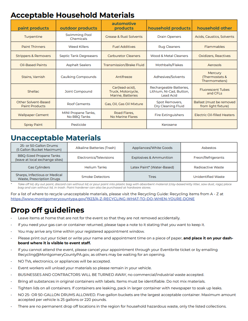 2026 MONTCO HOUSEHOLD HAZARDOUS WASTE COLLECTIONS