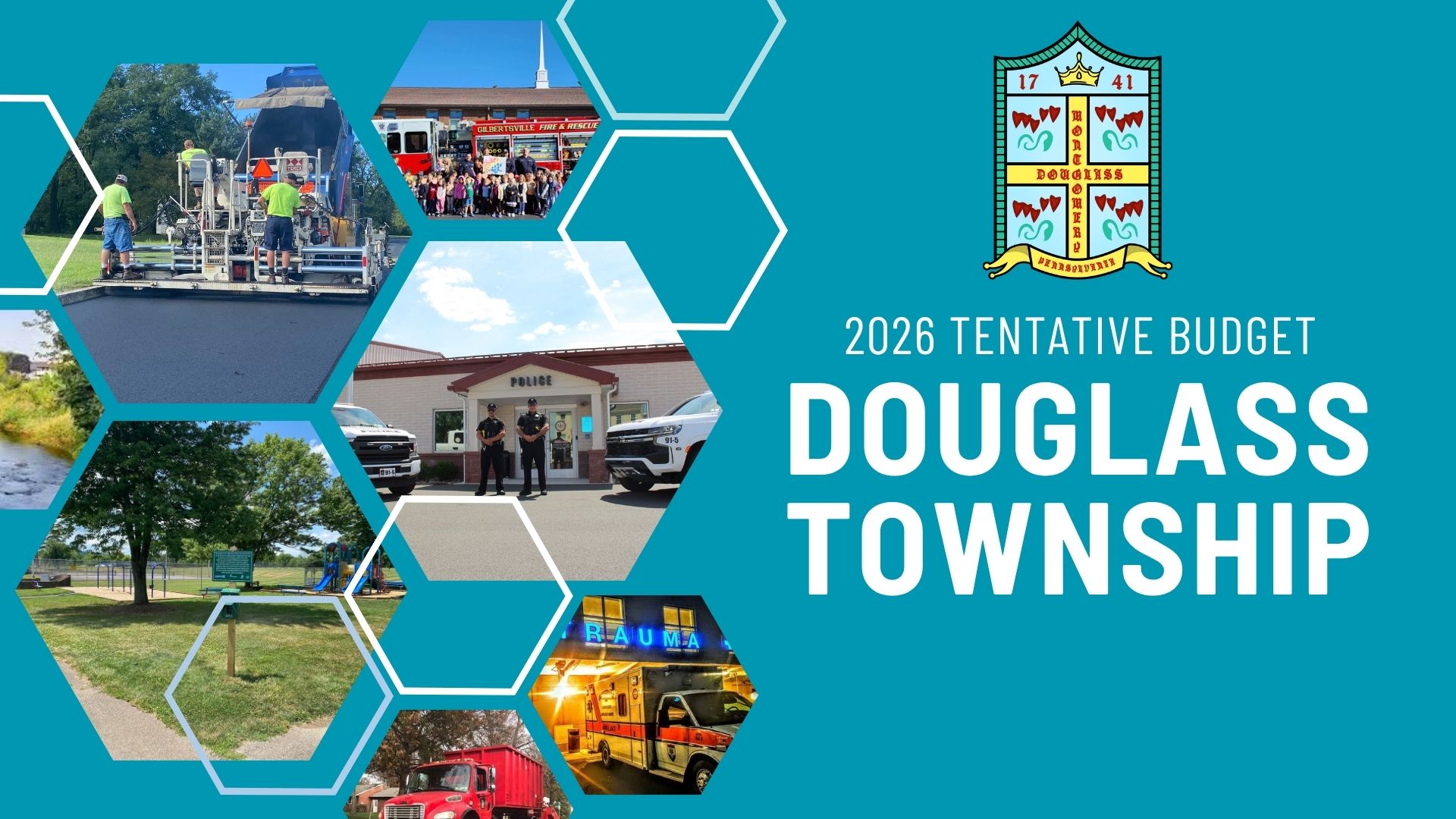 The Board of Supervisors of Douglass Township, Montgomery County wish to announce that the 2026 General Fund Budget ($5,966,398.74) has been prepared and was tentatively adopted at their regularly scheduled meeting on Monday November 17th, 2025. The entire budget is available for public inspection at the Township Administration Building located at 1320 East Philadelphia Avenue in Gilbertsville, 19525 (M–F 8:00AM to 4:00PM). A copy will also be available for review on the Township’s website at www.douglasstownship.org. The Township Supervisors can formally adopt the 2026 final budget at their meeting on Monday December 15th, 2025 at 7:00PM. If you have questions, or need any other assistance, please call the Township Office at (610) 367-6062.